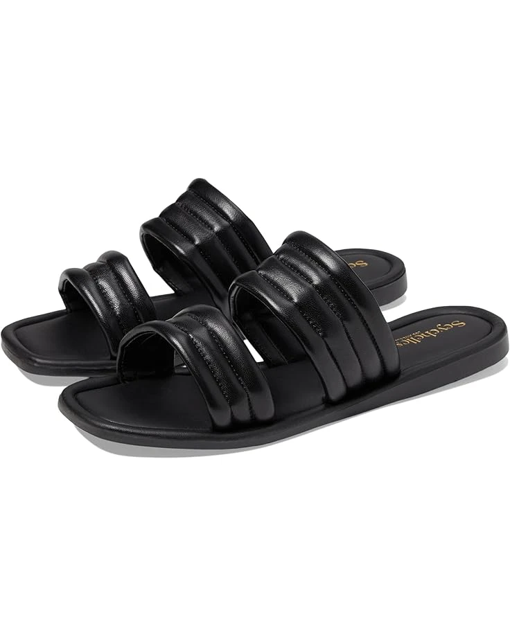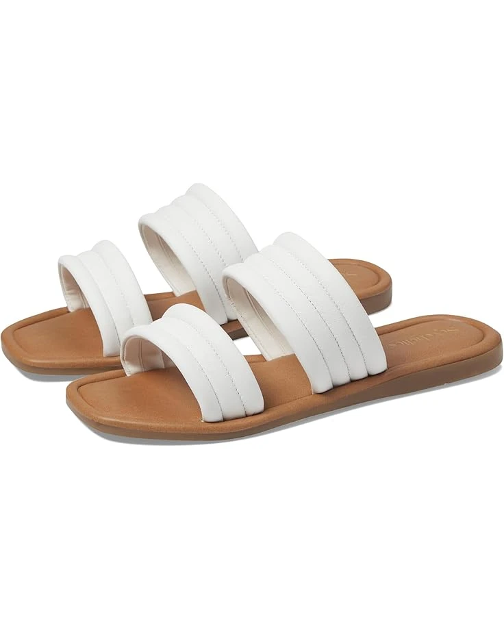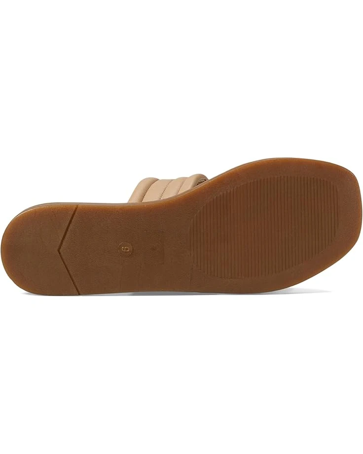 - Open, square toe slides with double banded puffy upper.