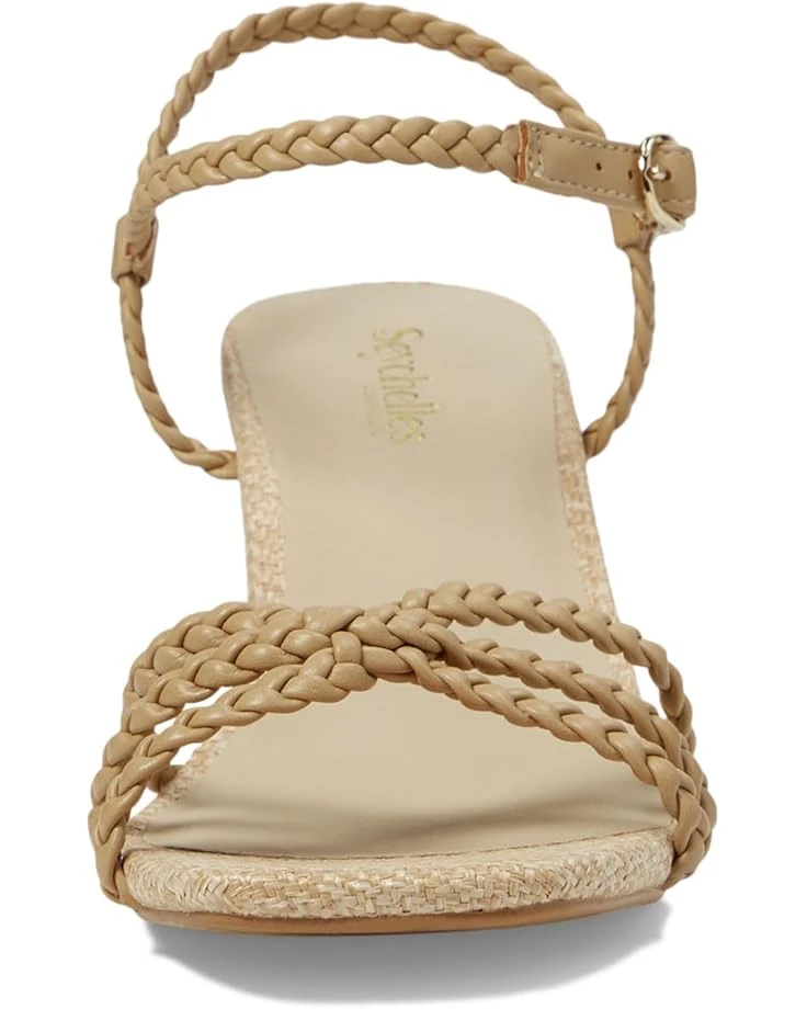 - Make a bold statement wearing the strappy design Seychelles® Cater To You. Crafted from braided leather upper, micro fiber lining and faux leather insole, this pair of sandals features open square toe, raffia wrapped block heel, padded sock, and buckled closure. This wardrobe essential comes with brand detailing on the footbed.