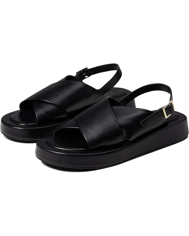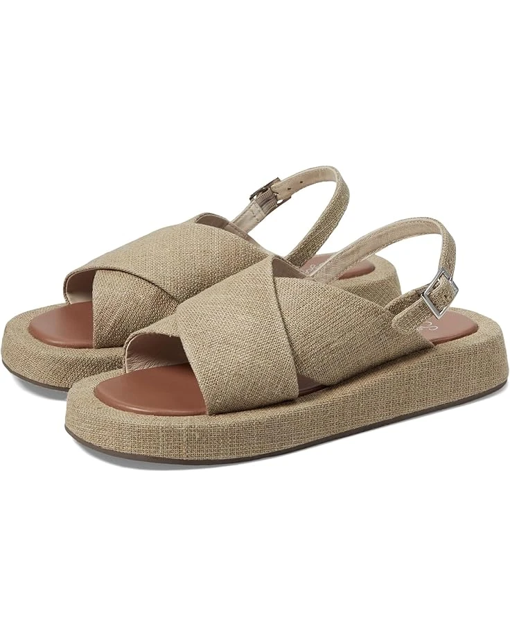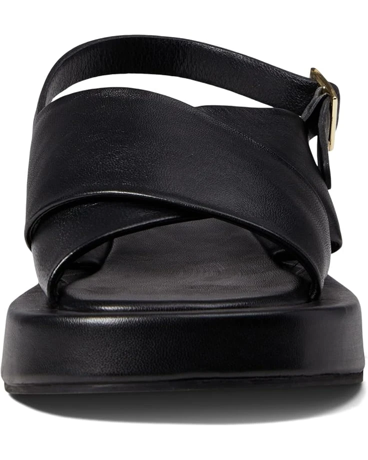 - Wide crossed straps on top of foot.
