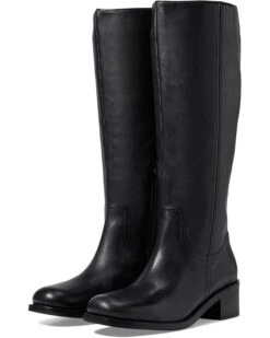 - Be a true trailblazer in these edgy knee-high boots. This tall mid-calf boot features a side ankle-zip closure, a classic squared-toe design with a bold stacked heel, and subtle western-inspired silhouette that adds a touch of vintage detail. These are crafted with a leather upper, leather lining, and padded leather insole.