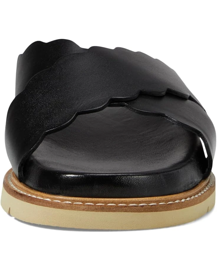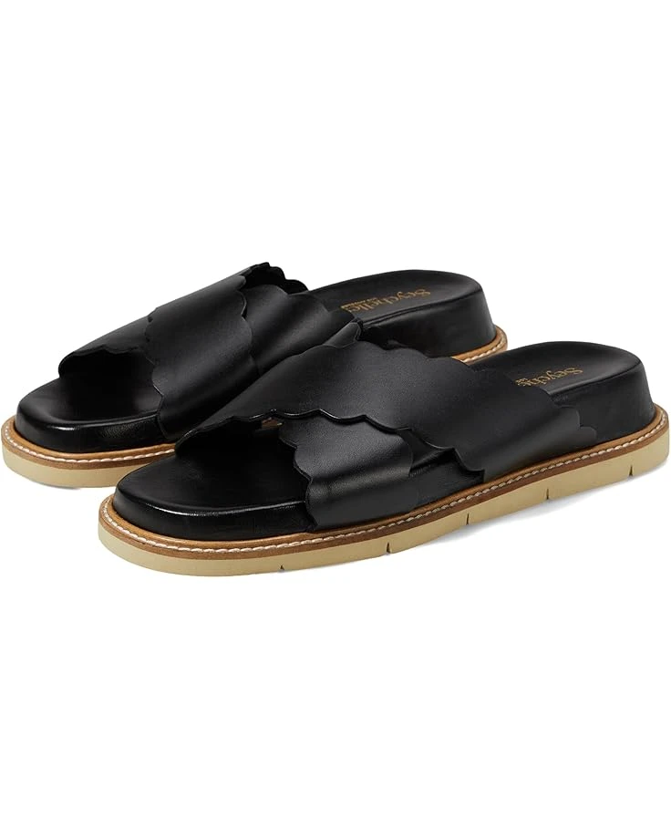 - Twirl up your feet in ease and style wearing the Seychelles® Woodstock Sandals. The slip-on footwear features leather upper straps with scalloped edges and an open rounded toe silhouette.