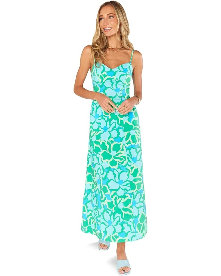 - Add a pop of color to your look by donning the Show Me Your Mumu™ Allegra Midi Dress that comes in an allover fun blue floral print and a midi-length silhouette. The dress features a sweetheart neckline, sleeveless design, sphagetti straps, smocked back detail, back zipper closure, and piping.