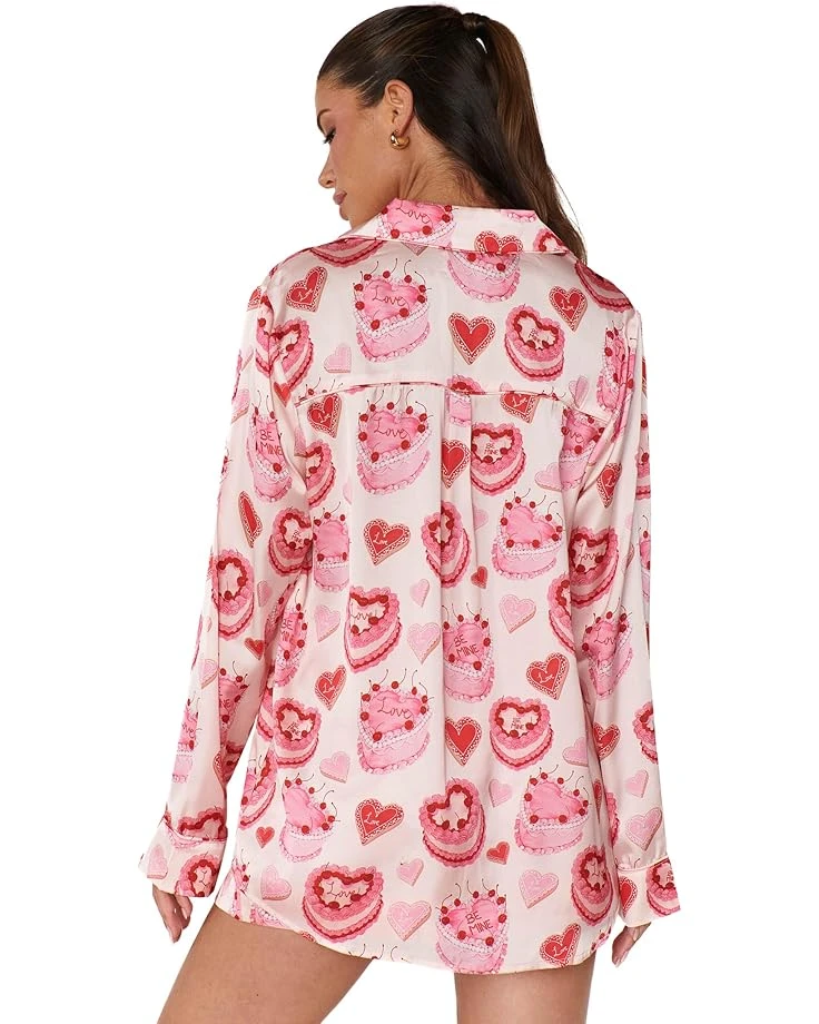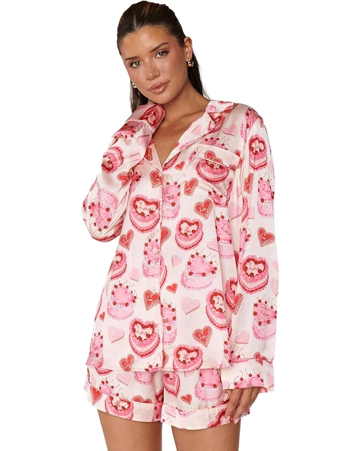 - Super soft and silky, the Show Me Your Mumuâ„¢ Favorite PJ Set is paired with a drawstring waisted short with a long sleeve button up blouse in our Queen of Hearts silky fabric print.