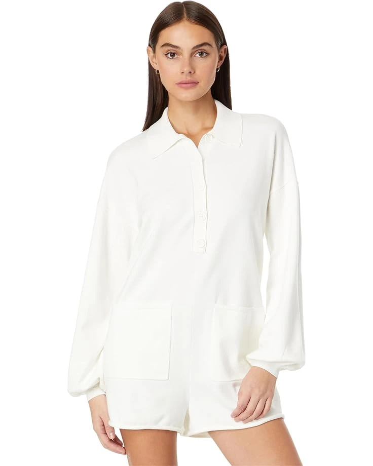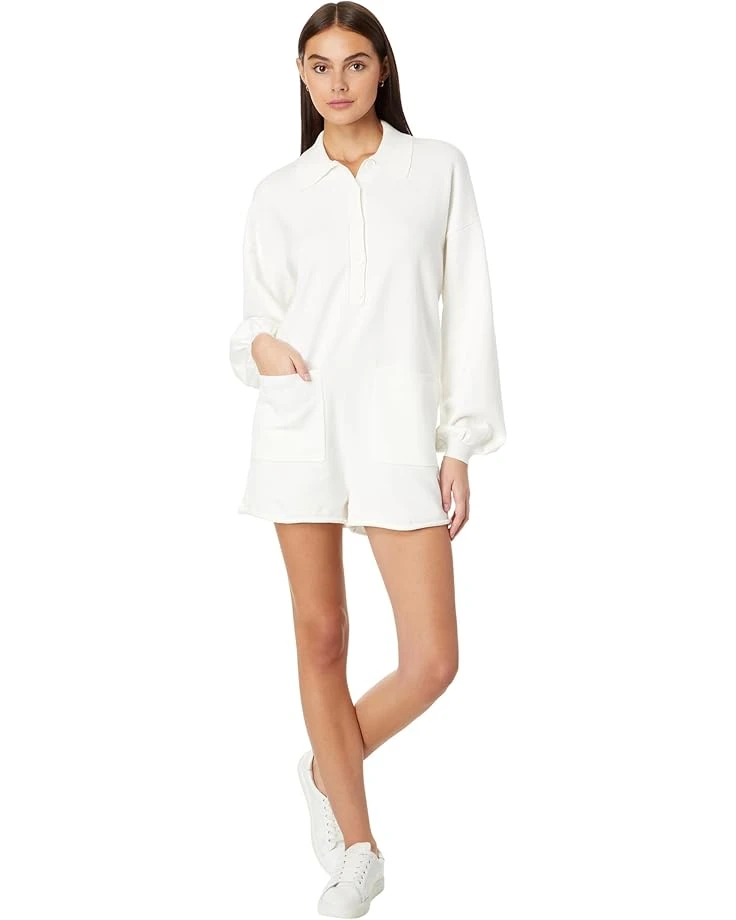 - The Show Me Your Mumu™ Gianni Romper is perfect for your effortless everyday look. The sleek romper has a regular-fit silhouette with a collared neckline, full blouson sleeves, front pockets, and a straight hem. The neckline has a quarter-button closure that makes it ideal for your everyday closet.