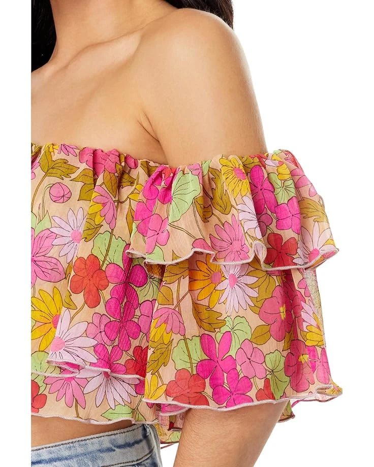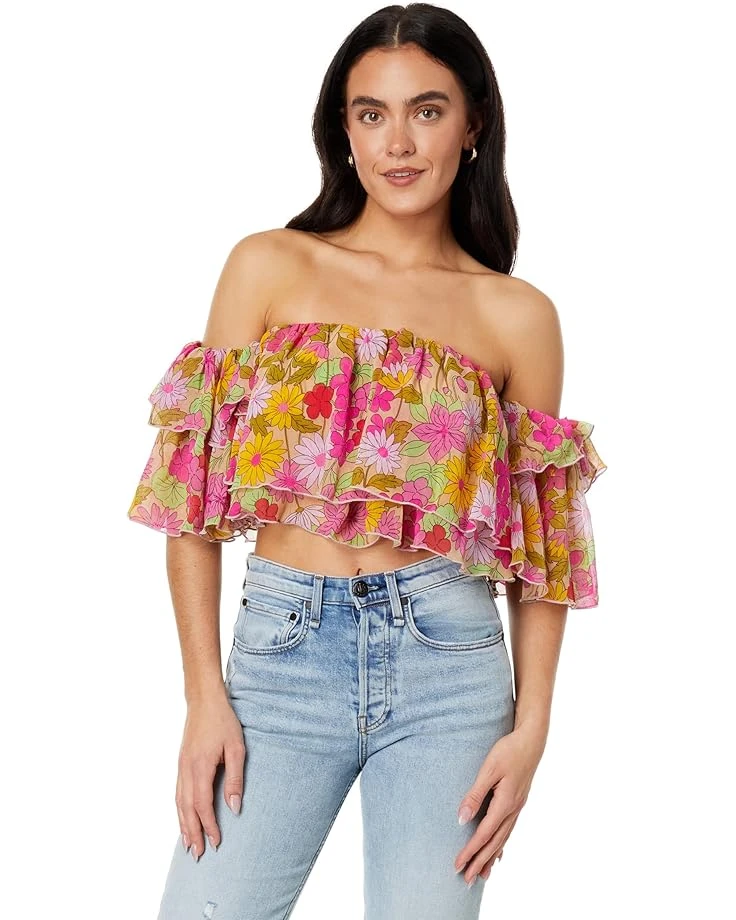 - The Show Me Your Mumu® Rossella Ruffle Top is a statement addition to your everyday wear closet for undeniable style. The off-shoulder top has a ruffled silhouette that goes to the sleeves, adding a fun touch to the look. The intricate floral design allover makes it an ideal choice to pair with your denim or shorts.