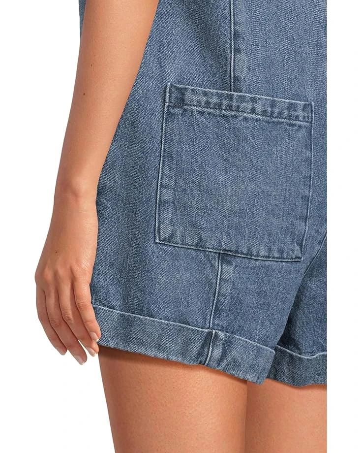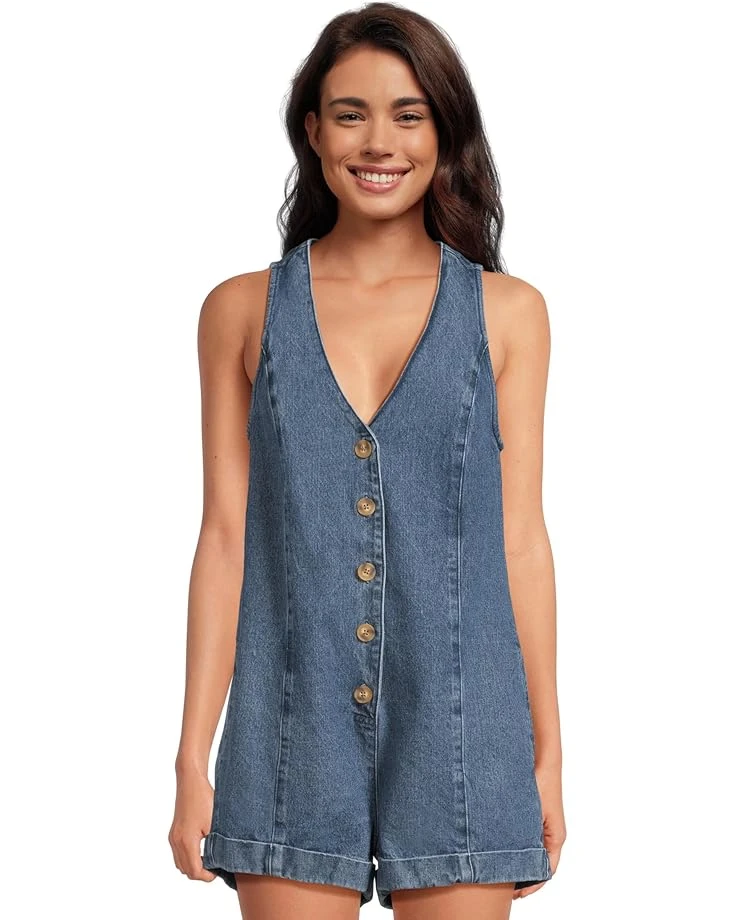 - Slay a stylish look wearing the Show Me Your Mumu™ Sandiego Romper. The short-length sleeveless romper has a cute deep V-neckline, buttons up, pockets, and a cute rolled hemline. Pair this romper with sneakers for bopping around anywhere.