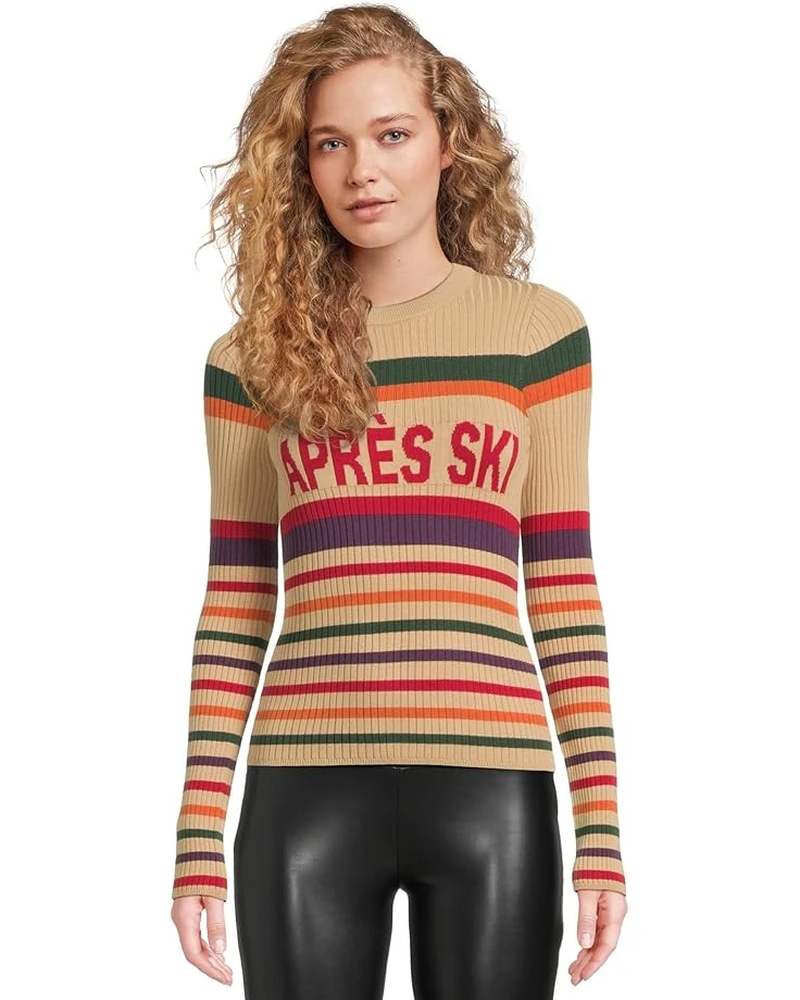 - Aprรจs Ski anyone? The Slopes sweater in neutral tan with jewel tone stripes is your perfect sweater for the chilly slopes. She’s ribbed and fitted and super cute. Pair back to denim, leggings, anything comfy.